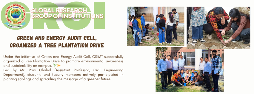 Under the initiative of Green and Energy Audit Cell, GRIMT successfully organized a Tree Plantation Drive to promote environmental awareness and sustainability on campus. 🌱✨