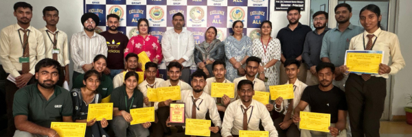 The Rotaract Club of Global Research Institute of Pharmacy proudly honored its dedicated students who actively participated in the Blood Donation & Health Camp organized by Jeevandeep