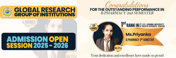 Global Research Institute of Pharmacy continues its legacy of academic excellence! Congratulations to Priyanka for securing 1st Rank in B.Pharmacy 2nd Semester under Pt. B.D.