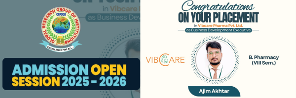 We are proud to share that Ajim Akhtar, B. Pharmacy (VIII Sem.) student of Global Research Group of Institutions, Radaur, has been successfully placed as a Business Development