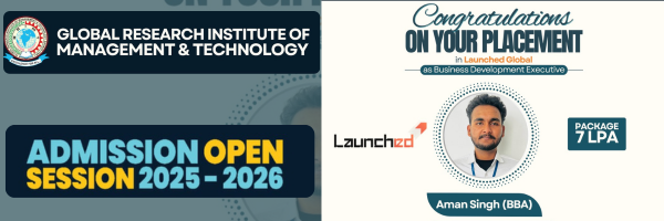 Congratulations to Aman Singh (BBA) on his placement as a Business Development Executive at Launched Global with a stellar package of ₹7 LPA! At Global
