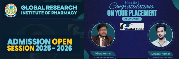 Heartiest congratulations to Mr. Vikas Kumar and Mr. Deepak Kumar, final-year B.Pharmacy students at Global Research Institute of Pharmacy, for securing placement as QA Officers