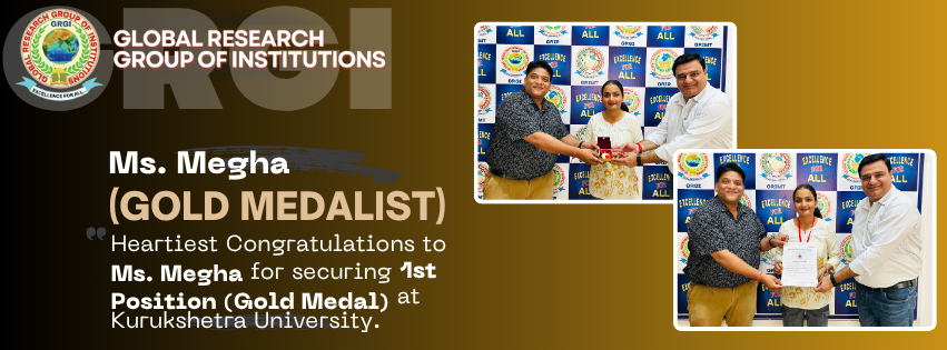 Heartfelt congratulations to Ms. Megha (B.Tech – EEE) for securing 1st Position (Gold Medal) at Kurukshetra University! 🎓🥇 Her exceptional academic performance has added yet