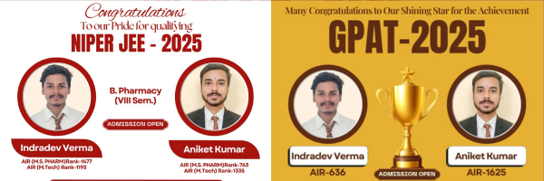 We are immensely proud to announce that our two brilliant B. Pharmacy-VIII Semester students, Indradev Verma and Aniket Kumar, have successfully qualified the prestigious GPAT