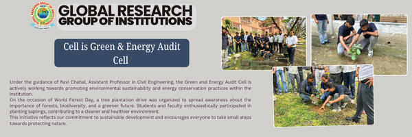 On the occasion of World Forest Day, the Green and Energy Audit Cell, under the guidance of Ravi Chahal, Assistant Professor, Civil Engineering, organized a