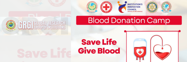 Global Research Group of Institutions (GRGI), in collaboration with the Indian Red Cross Society, Institution’s Innovation Council (IIC), and Rotaract Club, is organizing a Blood