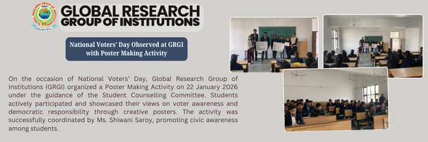 National Voters’ Day Observed at GRGI with Poster Making Activity On the occasion of National Voters’ Day, Global Research Group of Institutions (GRGI) organized a