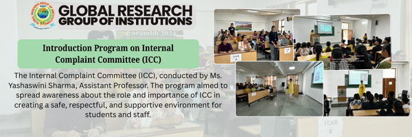 Introduction Program on Internal Complaint Committee (ICC) Global Research Institute of Management and Technology organized an informative session on the Internal Complaint Committee (ICC), conducted
